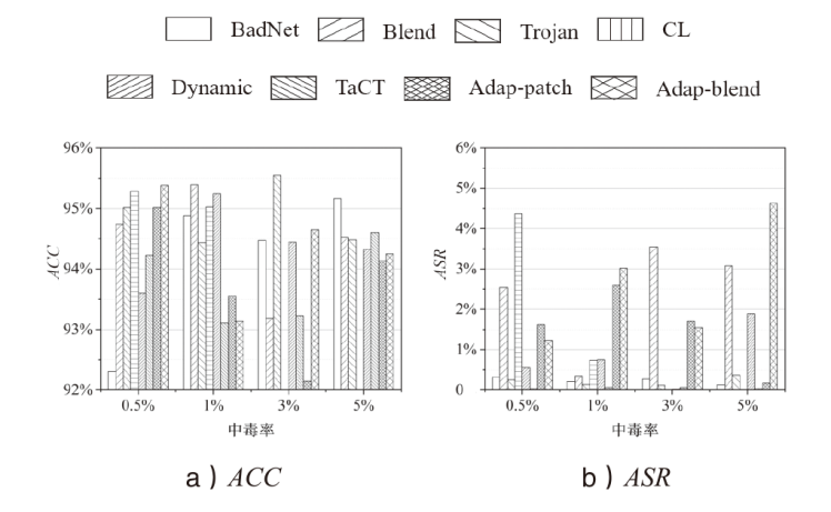 | ASR(%) | 96.89 | 58.66 | 3.89 | 28.34 | 6.31 | 1.38 | 49.39 | 0.50 | 0.51 | 0.36 | 0.35 | ||