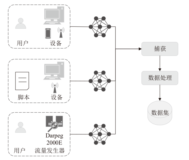 | ISCX VPN-nonVPN[ | 2016 | 数据集捕获了一个常规会话和一个通过VPN的会话,共有14个流量类别 | 部分 | 否 | 优点:良性流量具有多样性 缺点:缺乏攻击流量 |