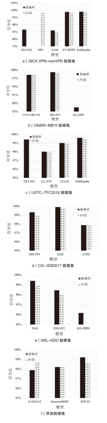 | 文献[ | NetMamba | USTC-TFC2016、 ISCXVPN2016、 CICIoT2022 | 推理速度快、占用内存小 | 模型解释性不足 | |