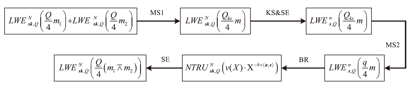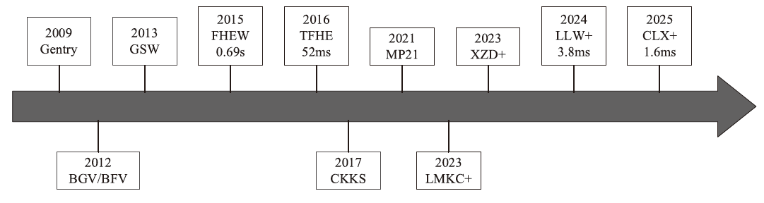 Key words: fully homomorphic encryption (FHE), gate bootstrapping, blind rotation, noise management, haedware acceleration