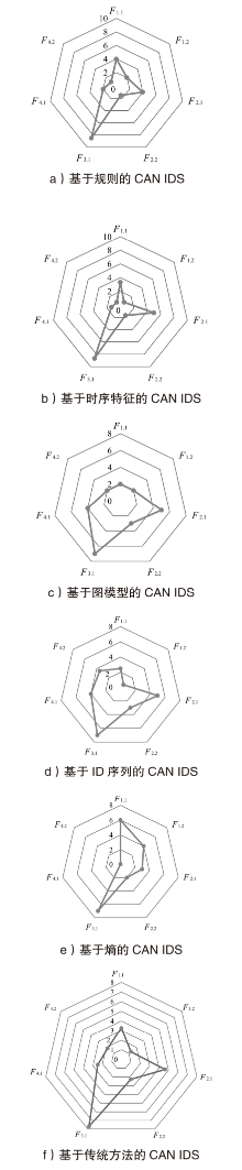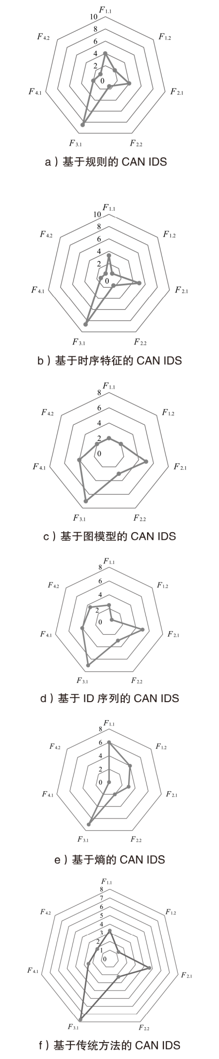 | 文献[ | 将连续的CAN消息序列转换为图像形式的数据表示,并基于BCNN网络实现入侵检测 | 4 | 2 | 3 | 1 | 5 | 4 | 2 | 5.35 | 中 |