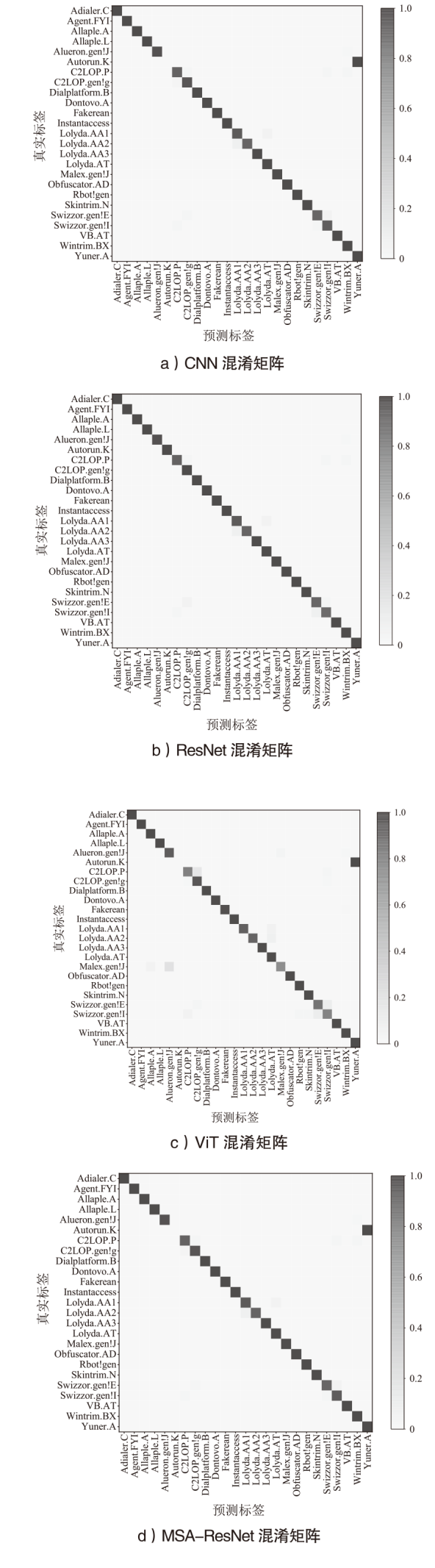 | 本文方法 | Malimg | MSA-ResNet | 99.47% | 99.49% | 99.47% | 99.46% |
