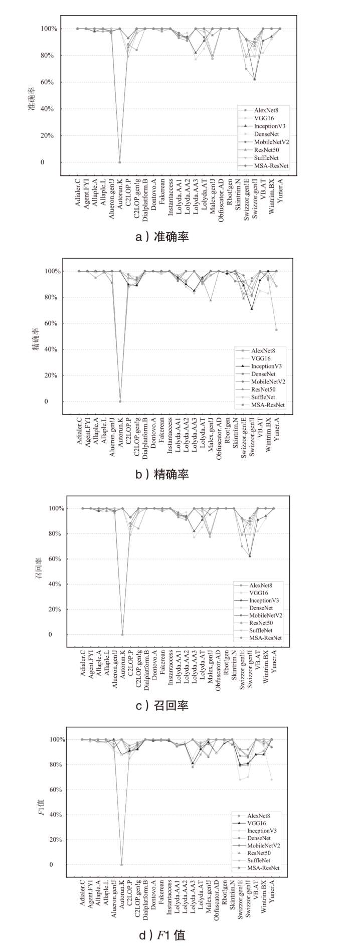 | 文献[ | Malimg | NSGAII+CNN | 97.60% | 97.60% | 88.40% | — |