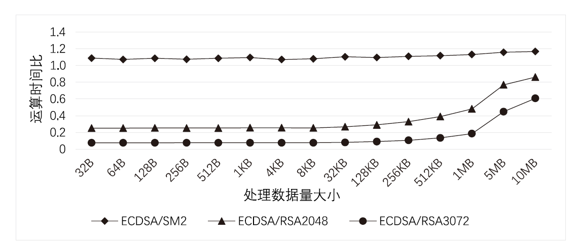 3种数字签名算法的签名运算时间比
